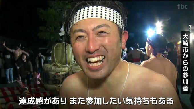 栗原市一迫で行われた「春を呼ぶ裸たるみこし」には地元の住民など50人が参加しました。