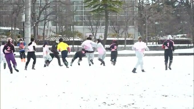 「雪上ラグビー大会」が青森県弘前市で行われ、参加した選手たちが熱戦を繰り広げました。弘前市運動公園の多目的運動広場で行われた雪上ラグビー大会はラグビー人口の拡大などを目的に弘前ラグビーフットボール協…