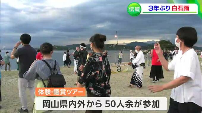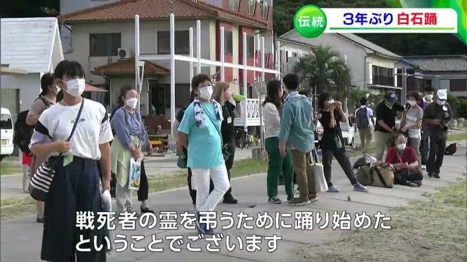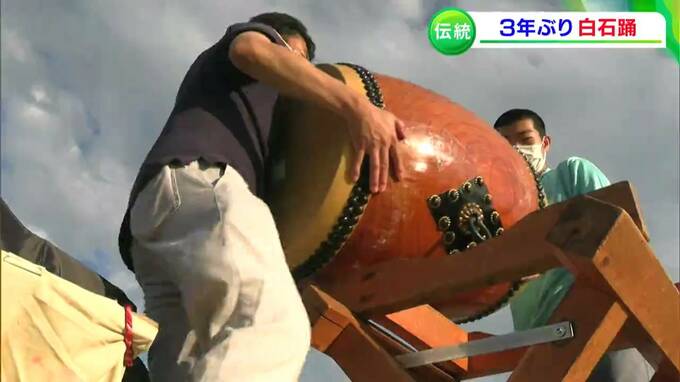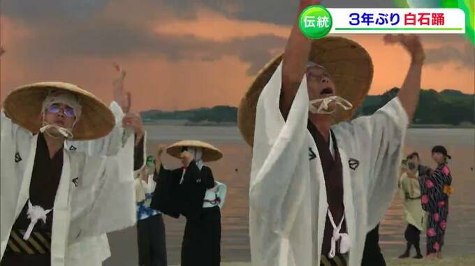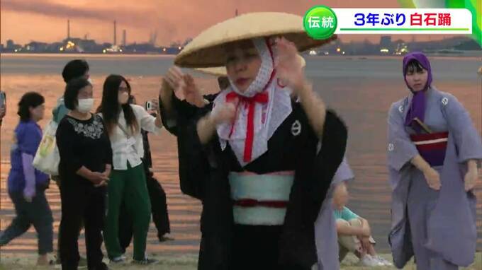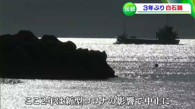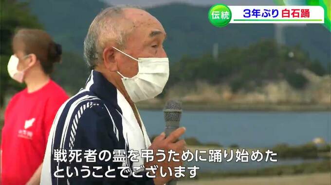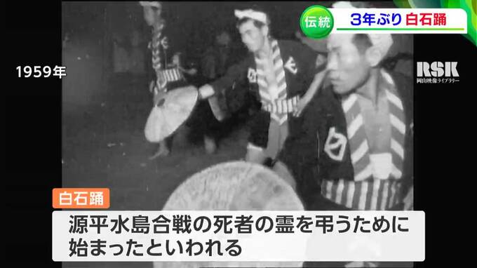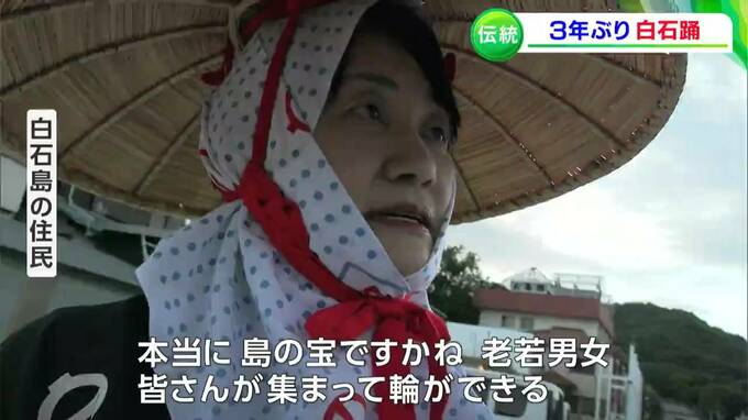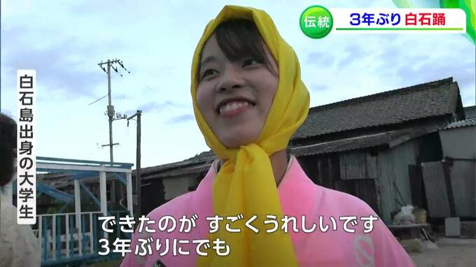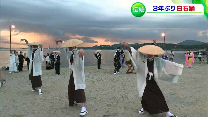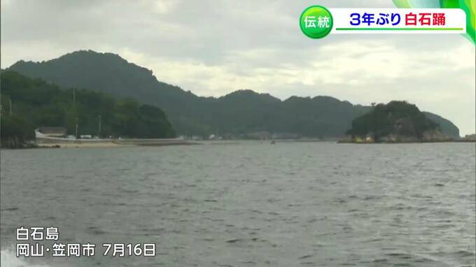 源平合戦が起源とされる、伝統ある島の踊りが3年ぶりに復活です。笠岡市の白石島で16日、国の重要無形民俗文化財に指定されている「白石踊」が披露されました。