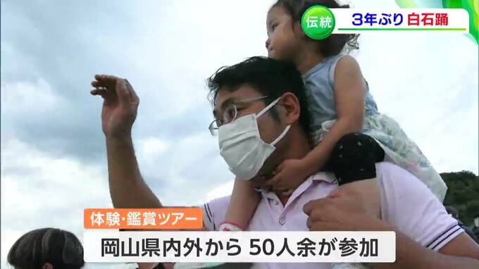 この日は、岡山県内外から50人余りが参加して、白石踊り体験ツアーが行われました。