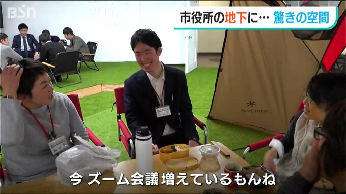 こちらの実は、新潟県の三条市役所の建物の中にキャンプ場のようなスペースが…市の職員がDIYで作りました。