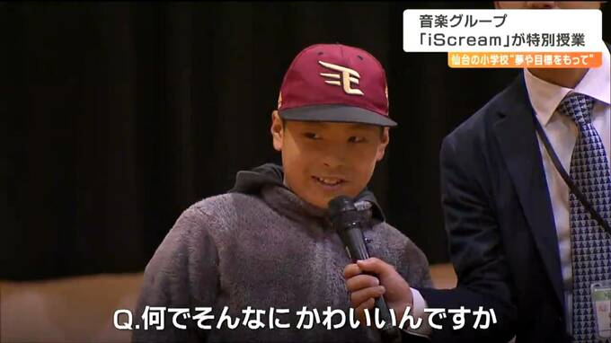 特別授業が行われたのは、仙台市立鶴谷小学校で、4年生から6年生のおよそ220人が参加しました。2021年にデビューした3人組音楽グループ「iScream」。メンバーのHINATAさんは仙台市出身です。児童からはこんな質問も飛び出しました。