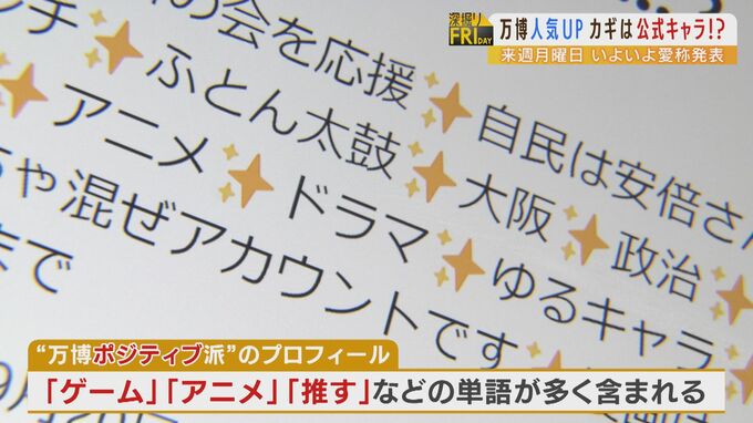 そうしたポジティブなツイートをしている人のプロフィールを分析すると、「ゲーム」や「アニメ」「推す」といった単語が多く入っていて、いわゆる「ネット民」が公式キャラに反応したようです。
