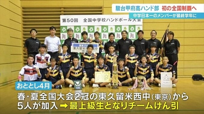 山梨県の駿台甲府高校ハンドボール部は、中学時代に全国優勝をしたメンバーが今シーズン最上級生となります。