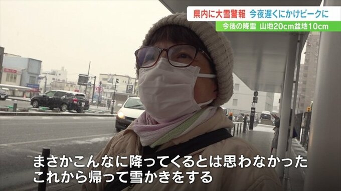 今後降る雪の量は多い所で山地で20cm、盆地で10cmと予想され、気象台は県内全域に大雪警報を出し、交通障害などに警戒するよう呼びかけています。