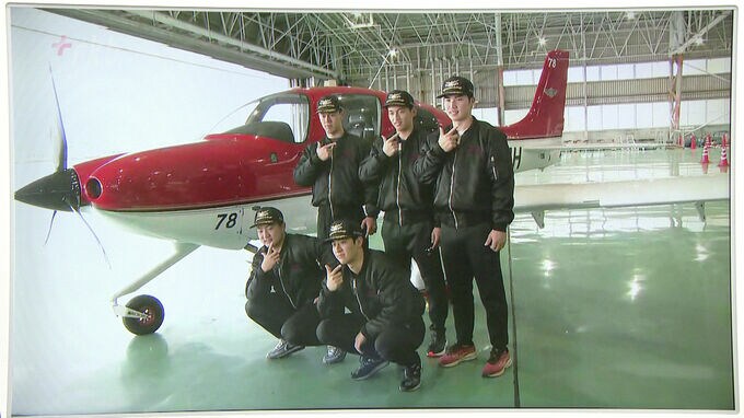 新人5人ホークスの春季キャンプは第1クールが終わり、5日は休日です。宮崎でキャンプを行うルーキー5人が、航空機の操縦を体験しました。 飛行機の前でポーズを決める選手たち。フライトジャケットに身を包む…