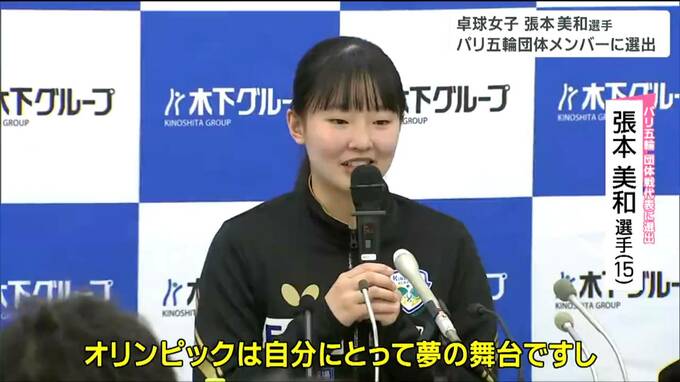 パリオリンピックの卓球団体戦の候補予定選手が5日発表され、仙台市出身の張本美和選手(15)が団体戦の代表メンバーに選出されました。