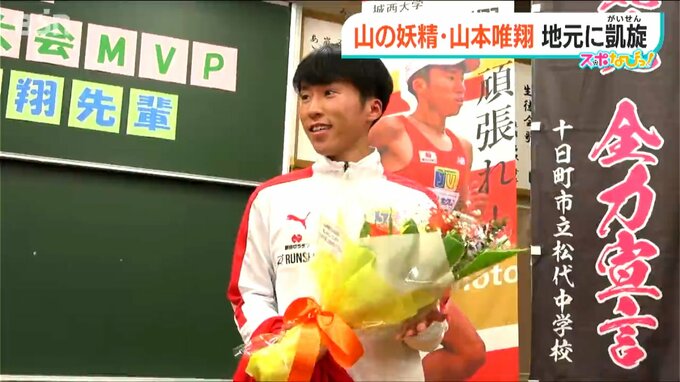 正月に行われた箱根駅伝で活躍し『山の妖精』と呼ばれた城西大の山本唯翔選手が、母校の松代中学校と十日町市役所を訪れました。