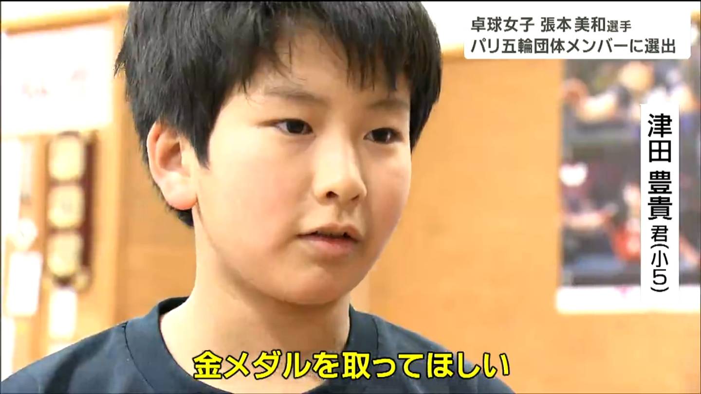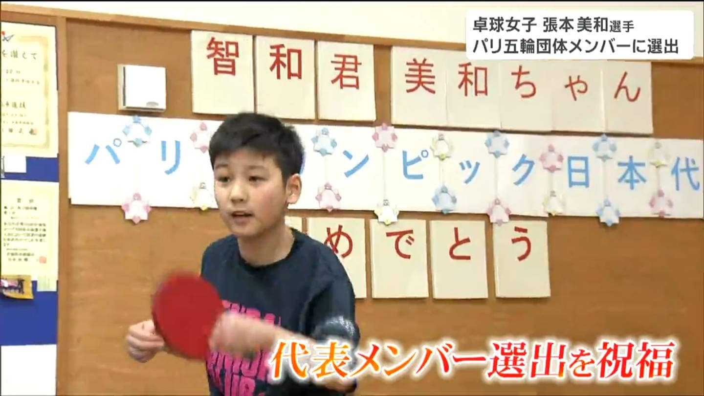張本美和選手(15)のパリ五輪団体メンバー内定で、張本選手の両親が経営する仙台市宮城野区の張本卓球場でも祝福の声が聞かれました。