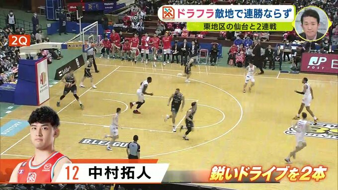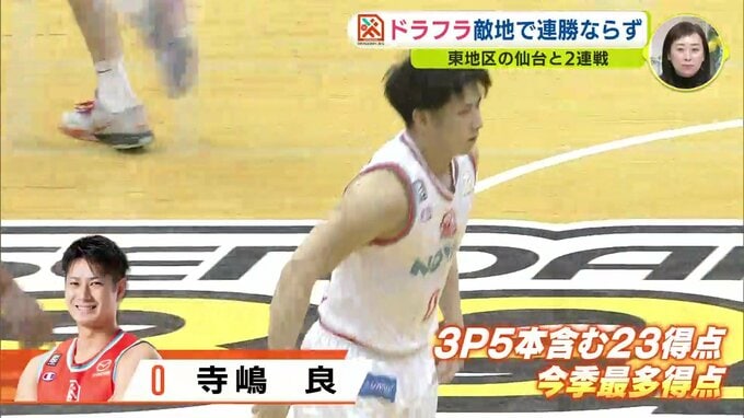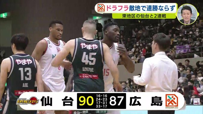 Bリーグです。チャンピオンシップ進出に向け、連勝したい広島ドラゴンフライズは、アウェイで東地区6位の仙台と対戦しました。