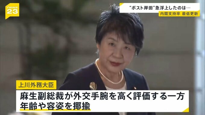 麻生副総裁に外交手腕を高く評される一方、年齢や容姿を揶揄され、注目された上川外務大臣です。