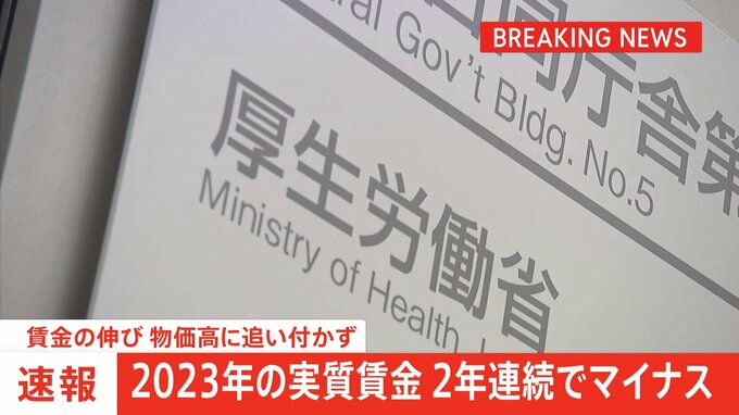去年の物価の変動を反映した働く人1人あたりの「実質賃金」が2年連続で減少しました。厚生労働省によりますと、基本給や残業代などを合わせた働く人1人あたりの去年の現金給与総額は、1か月平均の速報値で32万9859…
