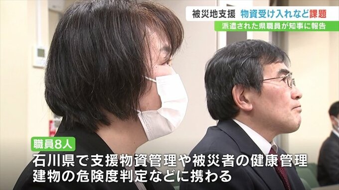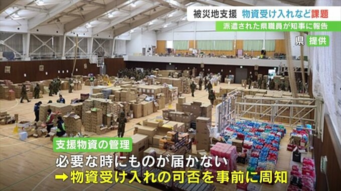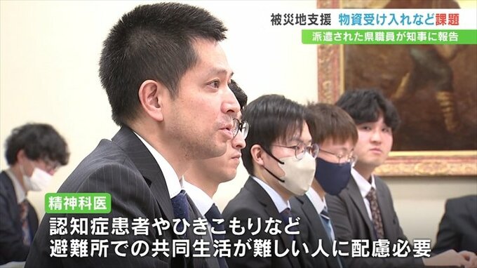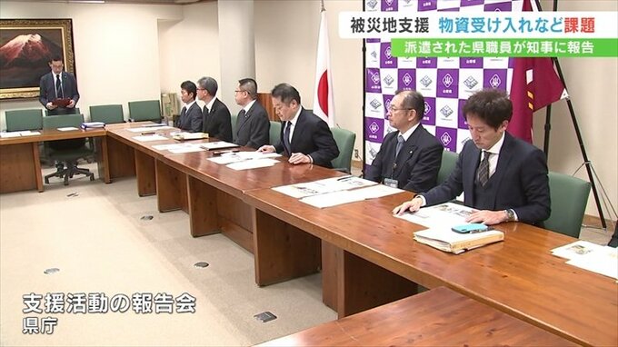 能登半島地震の被災地で支援活動を行った山梨県の職員が、長崎知事に物資の受け入れや被災者のケアなど、現地で直面した課題を報告しました。