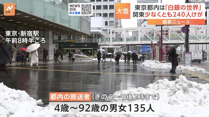 きのう、東京23区に大雪警報が出されるなど関東の広い範囲に雪が降り、1都6県では足を滑らせて転ぶなどして少なくとも240人がけがをしました。けさの東京・井の頭公園でドローンが撮影した映像。東京都内はきのう…