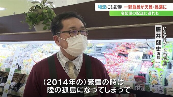 「(2014年の)豪雪の時は陸の孤島になってしまって、商品が入ってこない状況だった。それに比べて今回はごく一部の商品で防げている。地元の商品を手配して、なるべく客に迷惑が掛からない状態を作っている」