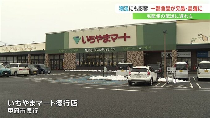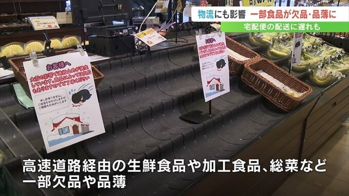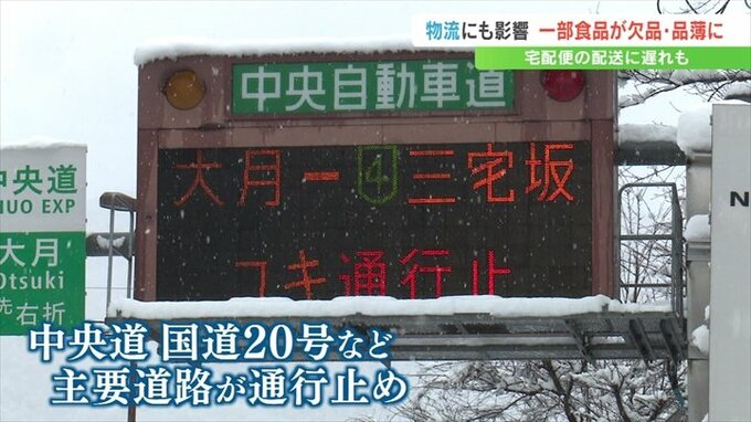 中央道が通行止めになった影響で、県外から高速道路を経由して入荷している生鮮食品や加工商品、総菜などの一部が欠品や品薄となりました。