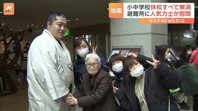 能登半島地震の影響による小中学校の休校が、きょうですべて解消されました。一方、避難所には人気力士がサプライズ慰問です。震災の爪痕が残る、けさの輪島市内。市内6つの小学校と1つの中学校がきょうから再開し…