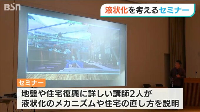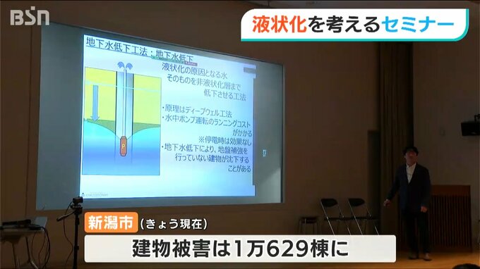 新潟市で6日、液状化現象により被災した家屋の復旧などに役立ててもらおうというセミナーが開かれました。建築事業者らが液状化の被害や家屋の復旧について考えます。