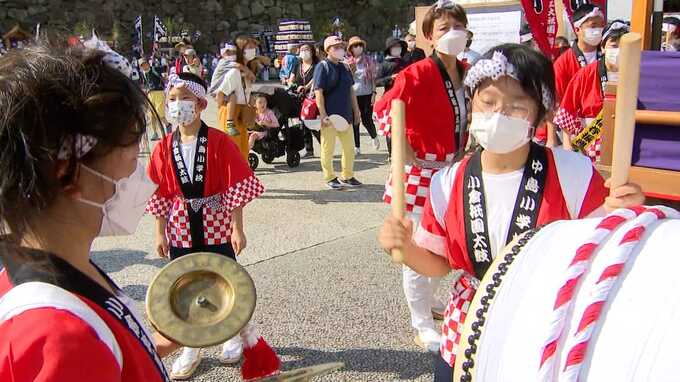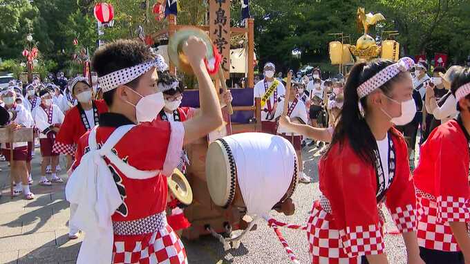 今年は新型コロナの感染対策のため、多くの団体が集まる「競演大会」や70台以上の山車が街を練り歩く「廻り祇園」は見送りとなりましたが、代わりに太鼓の腕前を披露し合う「太鼓総見」が子供と大人の部に分かれて行われました。