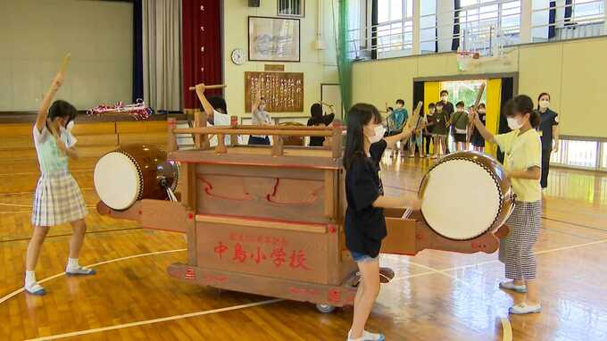 小倉北区にある中島小学校です。総合学習の一環として、卒業生や地域の協力を得ながら、22年前から祭りに参加しています。但し、学校の代表として「本祭り」で演奏するのは5年生のみ。新型コロナの影響で、去年とおととしは祭りが中止となったため、現在の6年生は憧れの舞台に立つことはできませんでした。