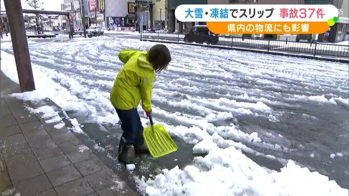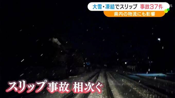 警察によりますと、人身事故が4件、物損事故が33件発生しています。人身事故は、いずれも凍結した路面でブレーキが利かずに前の車に追突したもので、追突された車のあわせて4人がけがをしましたが、軽傷だということです。
