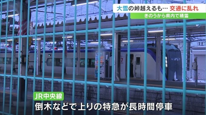 JR中央線は倒木などの影響で5日夜、上りの特急あずさが大月駅などに長時間停車しました。