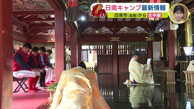 日南キャンプ恒例の鵜戸神宮参拝―。新井監督と堂林が祈とうを受け、日本一を祈願しました。