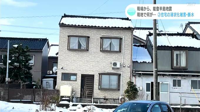 「富山湾に面する富山県・氷見市に来ています。私の後ろにある、あちらの住宅、よく見ると、右側が沈んで、建物が傾いてしまっているんですね。このあたりは『液状化』による被害が特に深刻な地域でした」