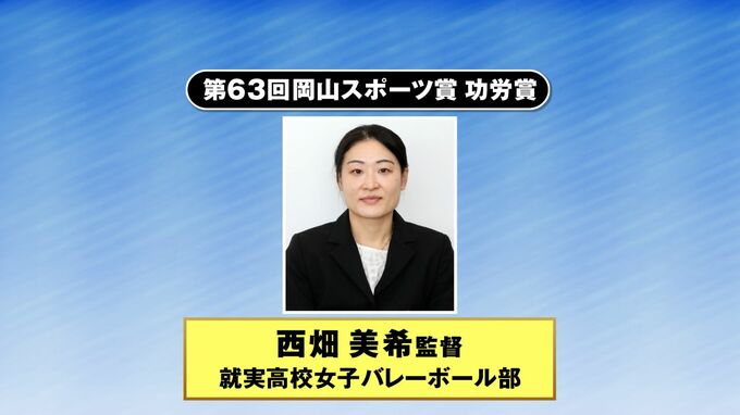 功労賞には、就実高校バレーボール部の西畑美希監督が選ばれました。授賞式は、2月21日に岡山市内で行われます。