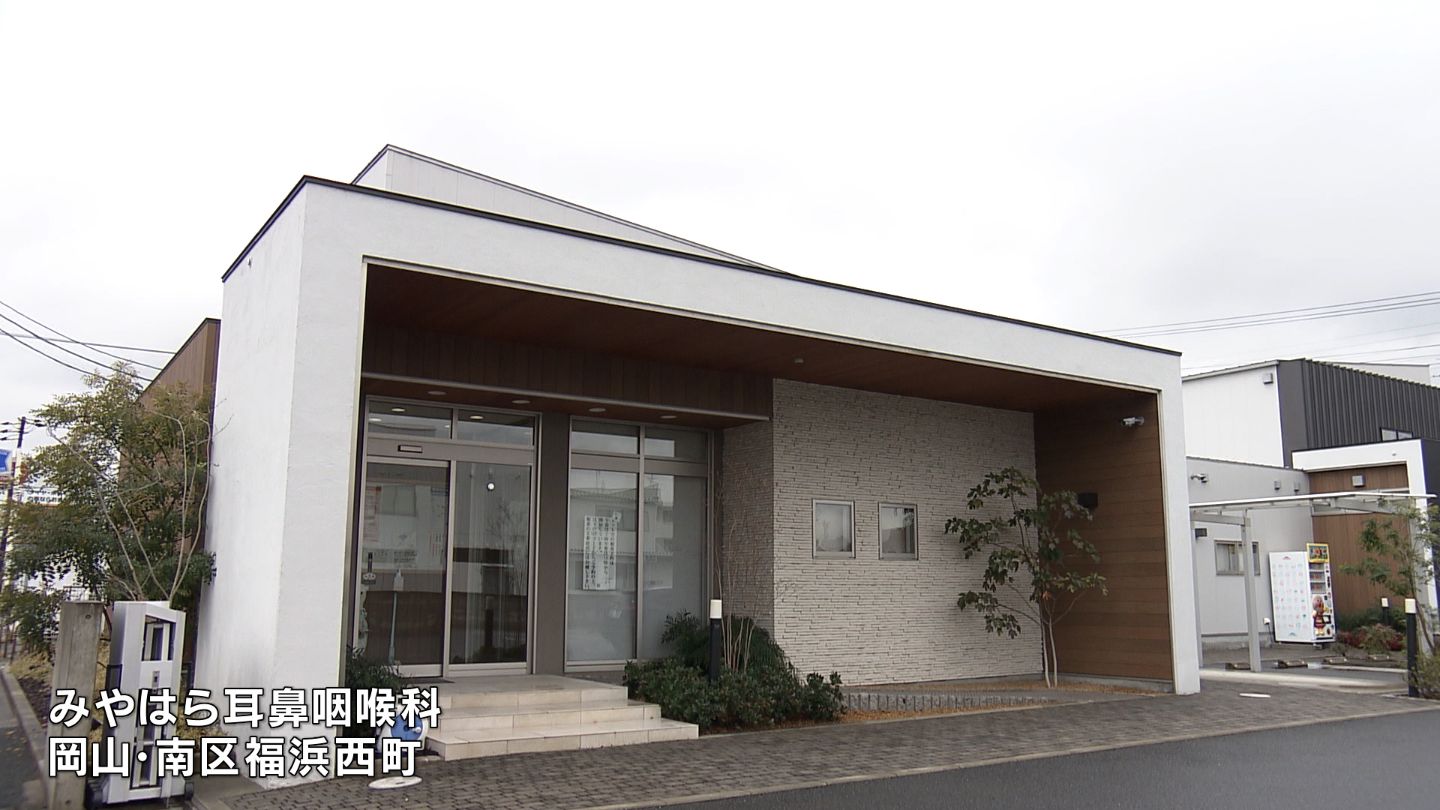 岡山市南区にある、みやはら耳鼻咽喉科です。この病院では、先週から「スギ花粉症」の疑いがある患者が急増。最近は特に子どもの患者も増えてきているといいます。