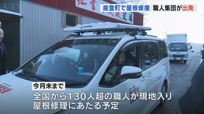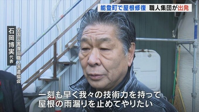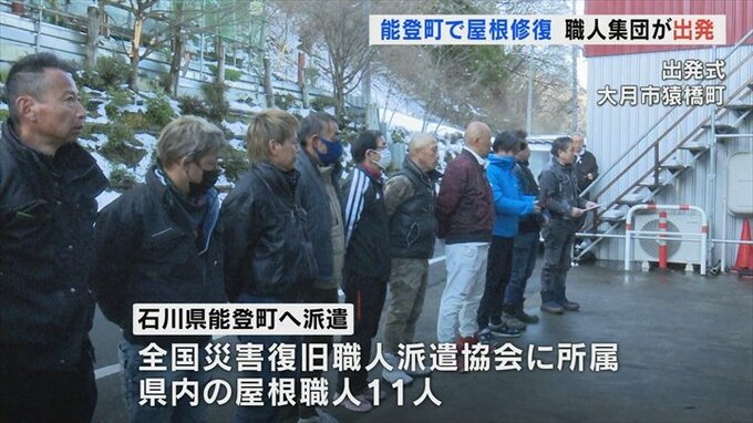 能登半島地震で壊れた屋根を修復するため県内の職人集団が7日に被災地へ出発しました。