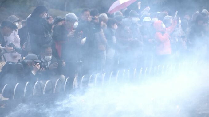 訪れた人たちは煙がうずを巻いて立ち上る様子などをカメラに収めて楽しんでいました。
