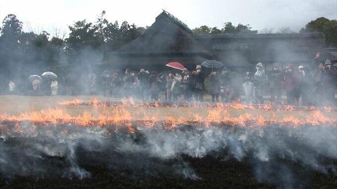 雨の影響によりきょう(7日)の芝焼きは中断となりましたが、明後日(9日)午後1時から再開されるということです。