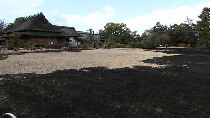 まだ寒い日が続きますが、岡山市の後楽園で「芝焼き」が行われました。早春の恒例行事です。