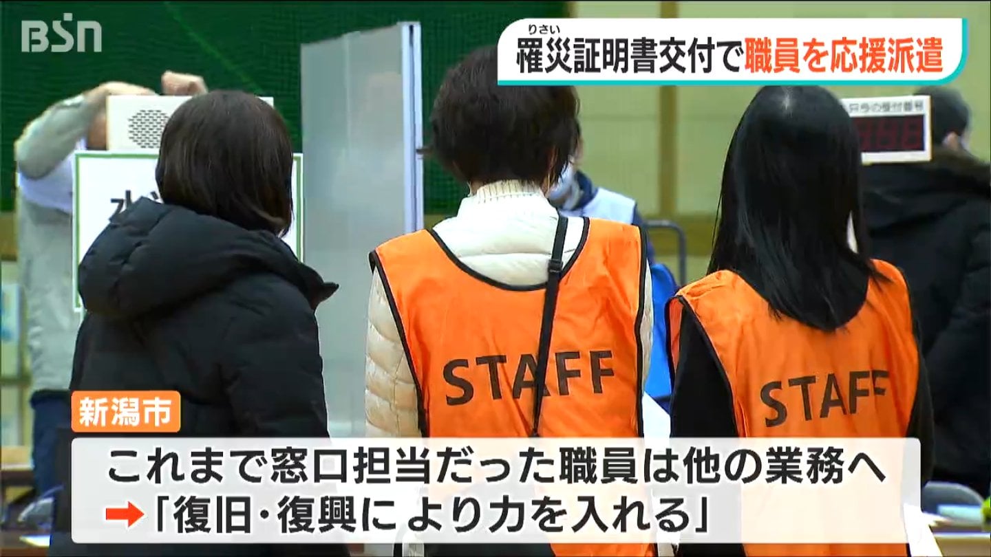 能登半島地震による住宅被害の罹災証明書の交付を急いでいる新潟市は、近隣の市町村から職員の応援を受け入れ交付を進めることになりました。