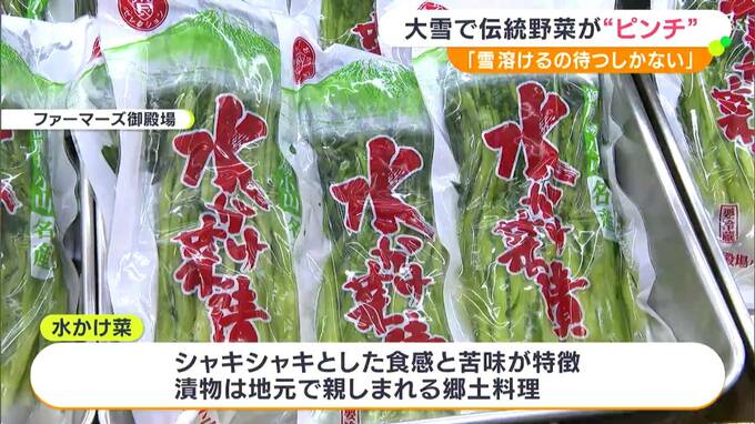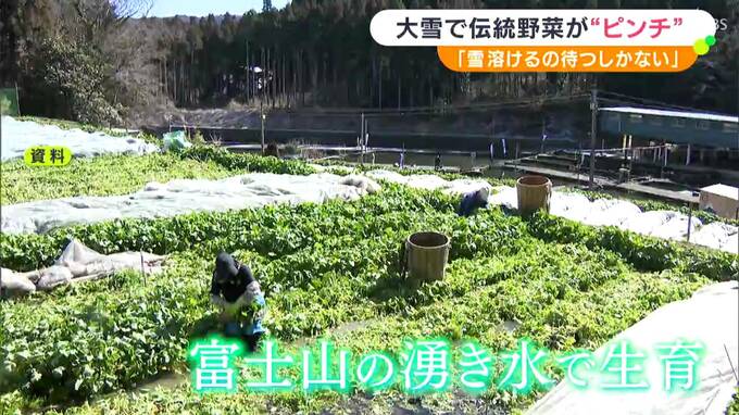 静岡県東部を中心に降った雪が地域の産業にダメージです。御殿場市の名産でいま収穫シーズンの農作物「水かけ菜」に影響が出ています。