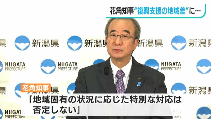 能登半島地震からの復興に向け、政府が能登地域を中心に新たな交付金を設けることを表明したのに対し、花角知事は「支援は新潟も同じであってほしい」と述べました。