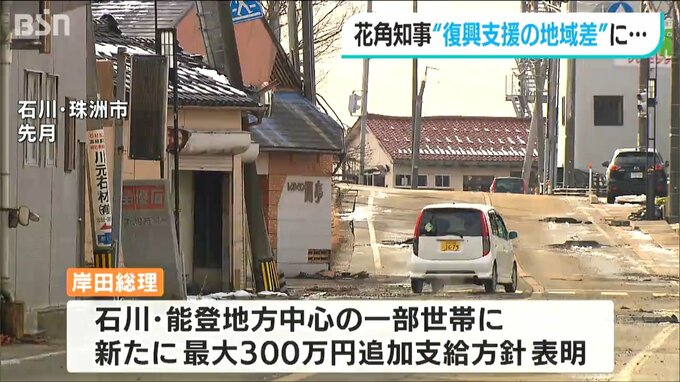 被災地域により、支援金額の差が生まれる制度について、花角知事は7日の会見で「地域固有の状況に応じた特別な対応は否定しない」とした上で次のように述べました。