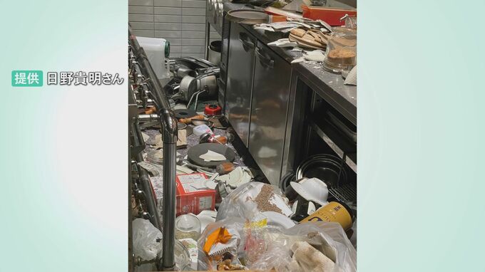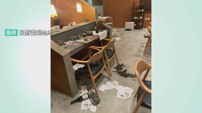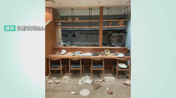 このおよそ1年後、元日の地震が店を襲い皿がおよそ50枚、ワインの瓶なども割れるなどし大きな被害を受けました。