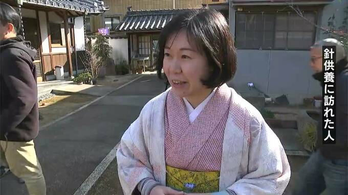 裁縫の技術を人々に授けたとされる神、淡島明神を祀る徳与寺では、毎年事始めの2月8日に針供養が行われています。折れたり錆びたりして使えなくなった針を、最後は豆腐やこんにゃくなど柔らかい物に刺して労をねぎらう行事です。けさは、和裁や洋裁に携わる約50人が使い古した針を持参して供養しました。