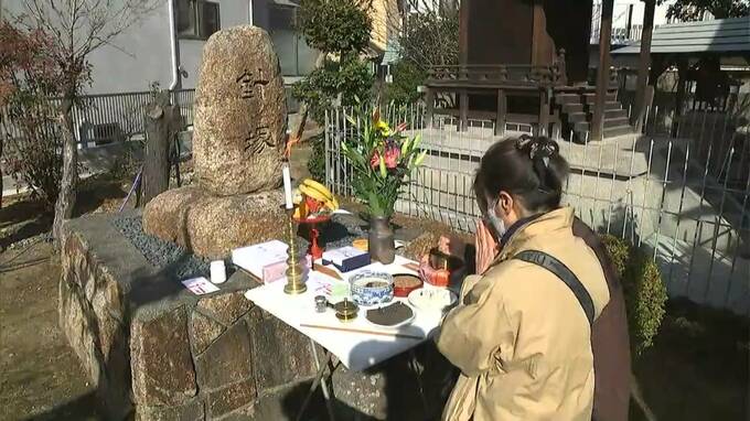 (針供養に訪れた人2人)「自分が上手いこと力が入れられないことによって曲がってしまうこともあるので、もっと上手くなれよという感じで刺してます」「去年祖母が亡くなっていっぱい針が出てきたので、それを大事にとり過ぎて錆さびになってもう使えないんですけどそれを持って来ました」