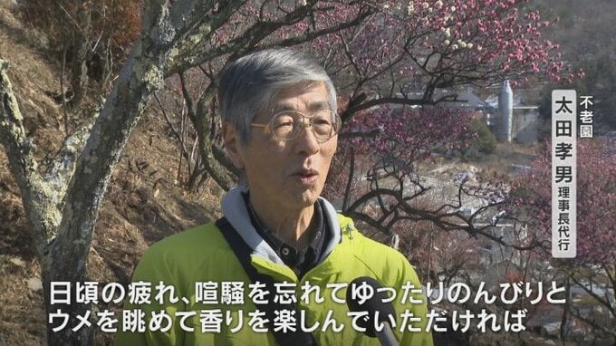 2月1日に開園した甲府市酒折の梅の名所「不老園」です。