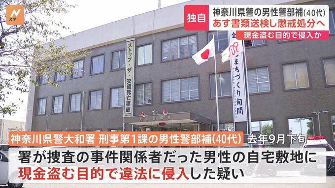 神奈川県警の男性警部補が去年9月、事件の関係者だった男性の自宅の敷地に現金を盗む目的で侵入した疑いがあることがわかりました。県警は、男性警部補をあすにも書類送検し、処分する方針です。捜査関係者により…