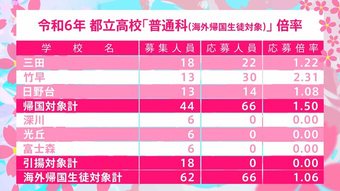 都立高校入試2024 志願倍率は日比谷1.84倍、西1.71倍、国立1.61倍に【令和6年度高校受験 進路希望調査】 TBSテレビ 2024年2月8日(木) 20:28 国内 普通科(海外帰国生徒対象)一覧 三田1.22倍、竹早2.31倍