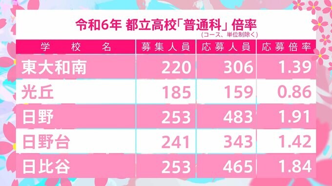 都立高校入試2024 志願倍率は日比谷1.84倍、西1.71倍、国立1.61倍に【令和6年度高校受験 進路希望調査】 TBSテレビ 2024年2月8日(木) 20:28 国内 学校別の一覧 日比谷1.84倍、広尾2.19倍