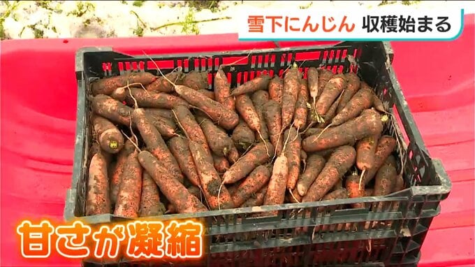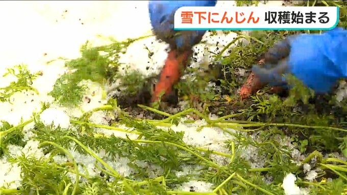 JA新潟かがやきによりますと、阿賀町で雪下にんじんをつくる農家は5軒で、例年は10tほどの出荷を目指していますが、今シーズンはサイズが小さいこともあってその半分ほどの出荷量になると見込んでいます。