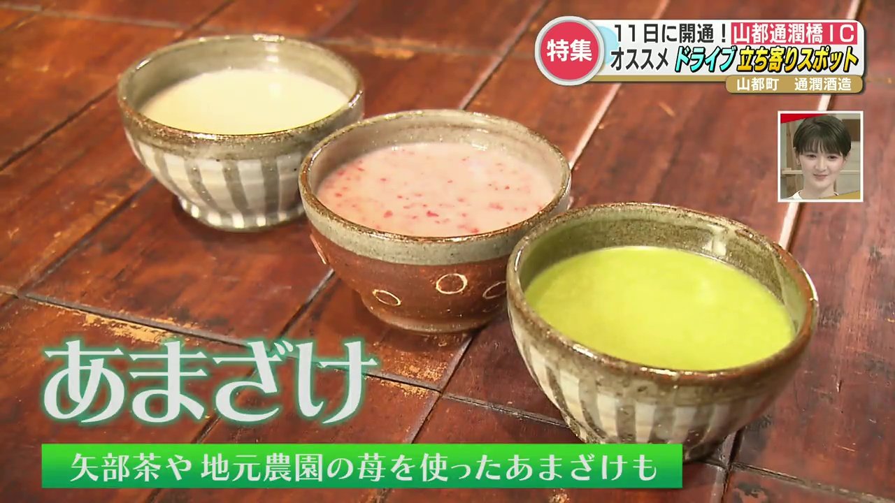 お酒が飲めない人には、酒蔵ならではの甘酒やスイーツも。矢部茶をブレンドした温かい甘酒をかけていただく濃厚な矢部茶アフォガードは絶品!