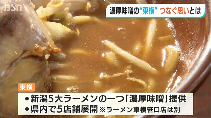 新潟5大ラーメンの1つ「濃厚味噌」を提供し、新潟市や長岡市など県内に5店舗を展開する「東横」。