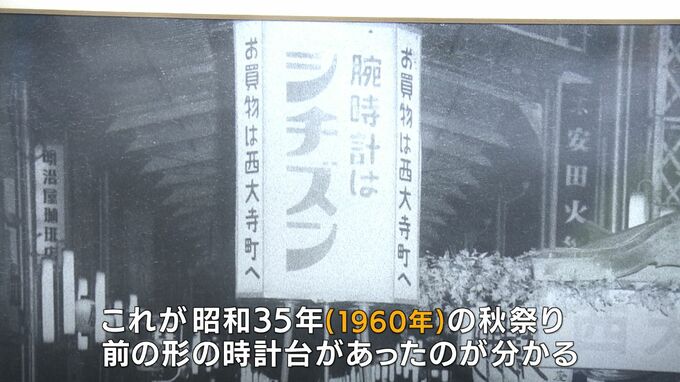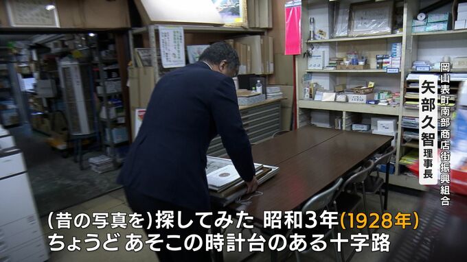(岡山表町南部商店街振興組合 矢部久智理事長)「(昔の写真を)探してみた昭和3年、ちょうどあそこの時計台のある十字路、この時には時計台の前身になるものはなかった」