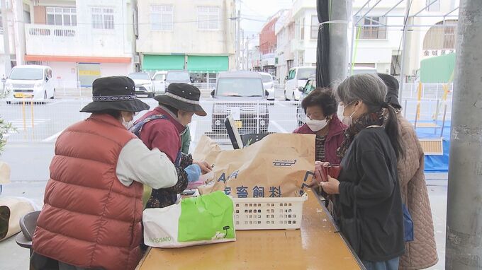 旧正月をあすに控え、糸満市の公設市場では、朝はやくから、豚肉やかまぼこ、屋敷の前に飾る門松などを買い求める客で活気づいています。